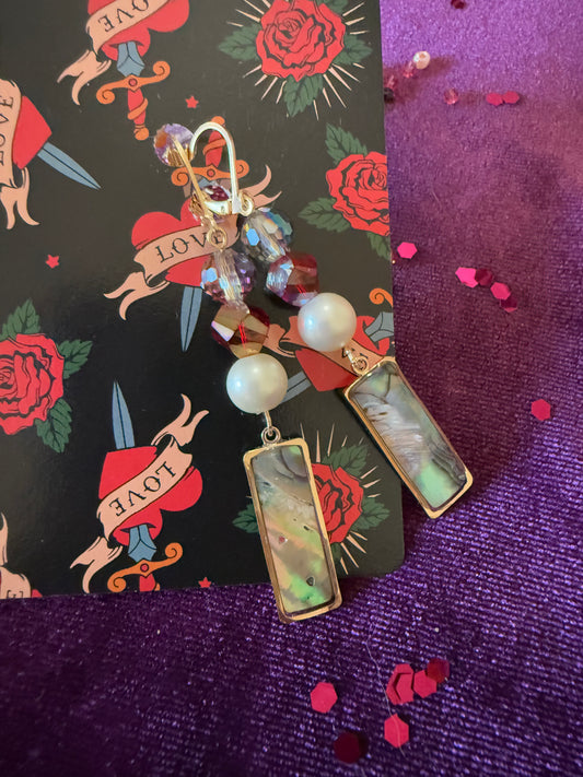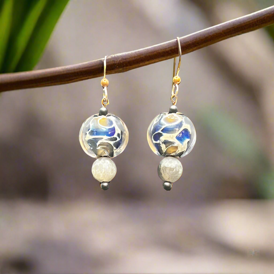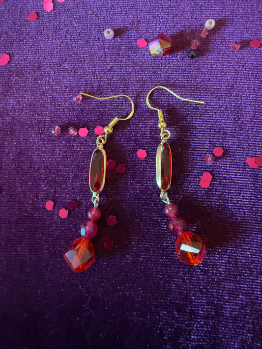Gold Lever-back Earrings with Natural Ruby and Bamboo Coral