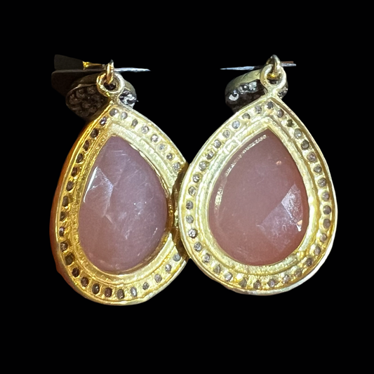 Genuine Pave’ Diamond Earrings with teardrop pink color agate gemstone
