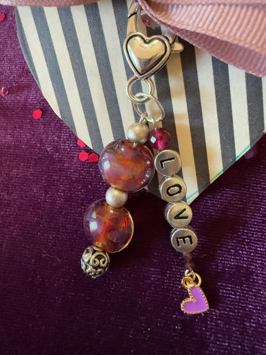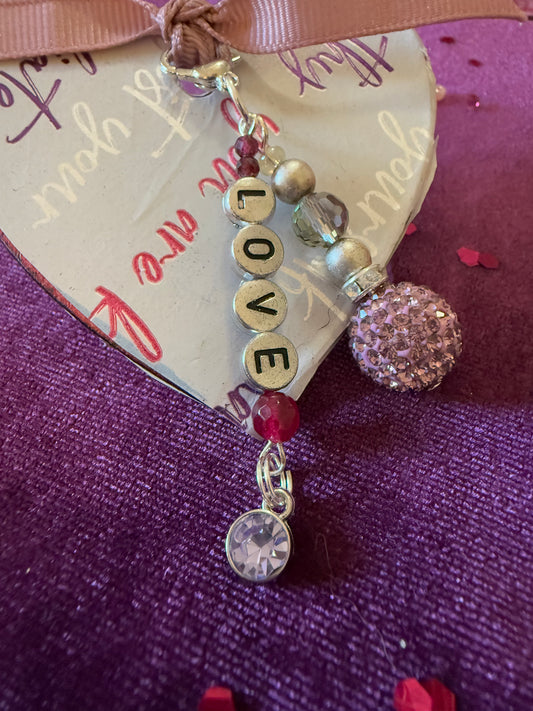 LOVE Charm Pink Sparkle Clip-on Phone Tag or Zipper Pull